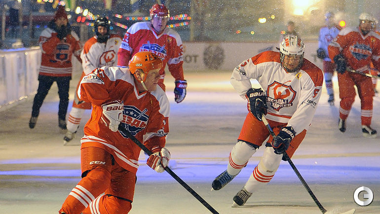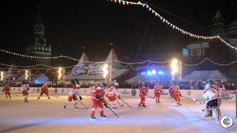 Звезды спорта и кино сыграли в хоккей на Красной площади