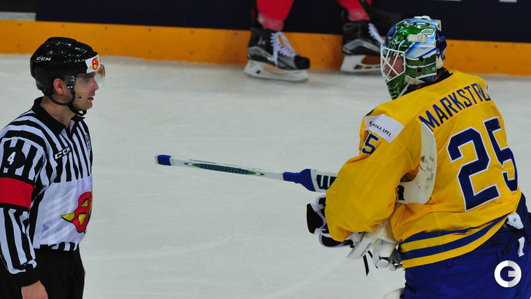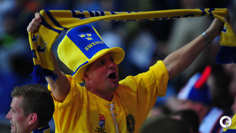 Дюрица и Вернблум на хоккейном матче Швеция - Чехия