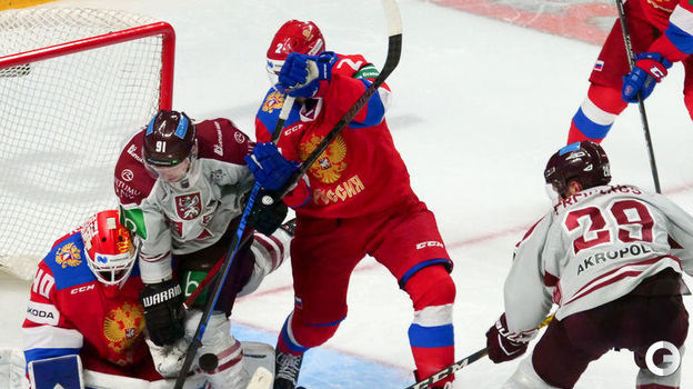 Сборная Латвии обыграла Россию в товарищеском матче в овертайме - 2:1. Счет во встрече открыл защитник СКА Артем Зуб. Восстановил статус-кво в третьем периоде форвард "Лозанны" Рональд Кениньш. Победная шайба в этой встрече на счету форварда "Спартака" Каспарса Даугавиньша.