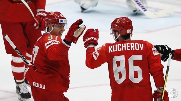 В составе победителей дублем отметился нападающий Евгений Дадонов, один гол на счету Никиты Кучерова. Нападающий Иван Телегин провел свой первый матч на этом ЧМ и забросил шайбу в первой же смене. Также первый гол провел капитан сборной Илья Ковальчук. Ворота российской команды защищал Александр Георгиев, отыгравший на ноль первым из бригады вратарей.