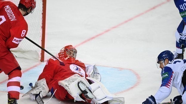 В матче группового этапа чемпионата мира по хоккею сборная России проиграла команде Словакии со счетом 1:3.