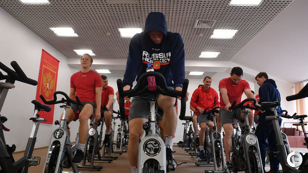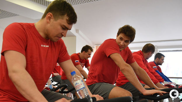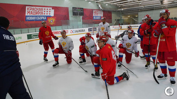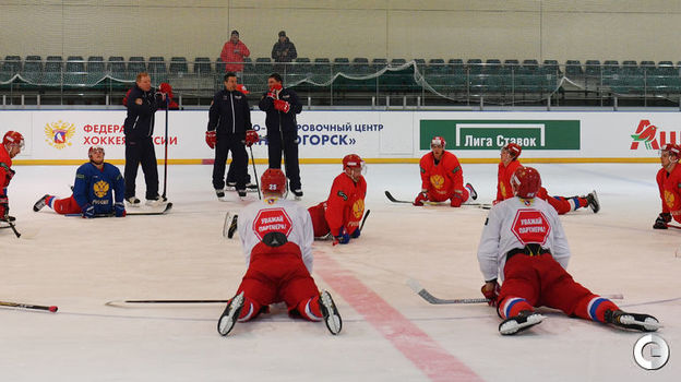 Кадры тренировки сборной России по хоккею перед отправлением на чемпионат мира. Главный тренер Илья Воробьев назвал состав из 26 хоккеистов, а капитаном команды стал Павел Дацюк.
