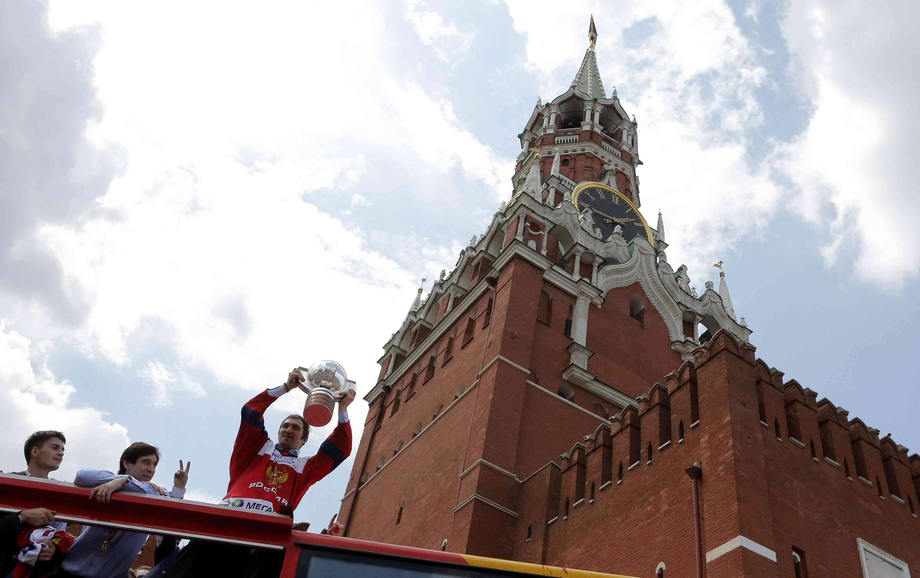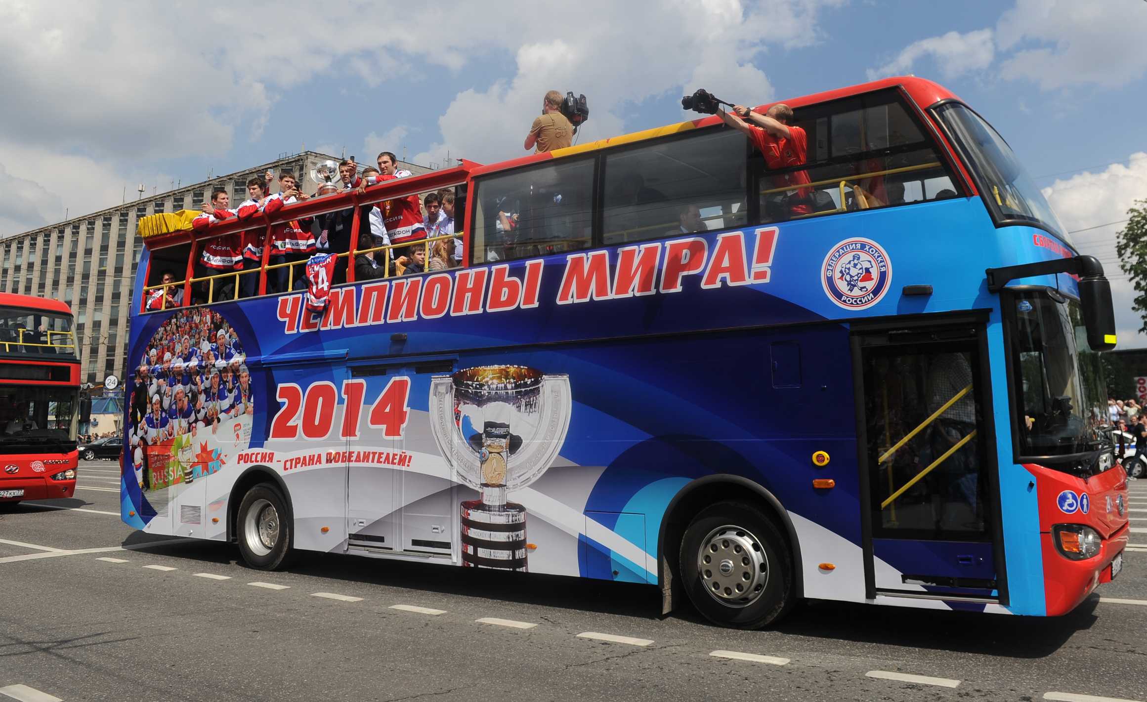 Цветами асфальт перед автобусом сборной, конечно, не устилали, но в народной любви герои Минска-2014 искупались сполна. Картина впечатляла. Овечкин не только демонстрировал чемпионский кубок публике, но и успевал ею дирижировать, отчего скандирование "Мо-лод-цы!" и "Мы чемпионы!" становилось стройнее.