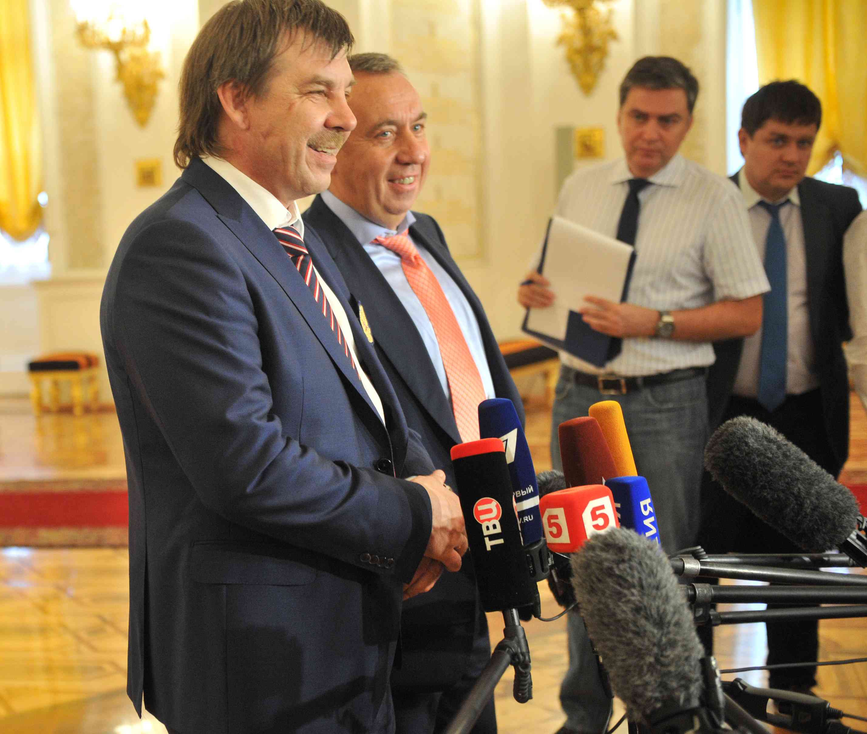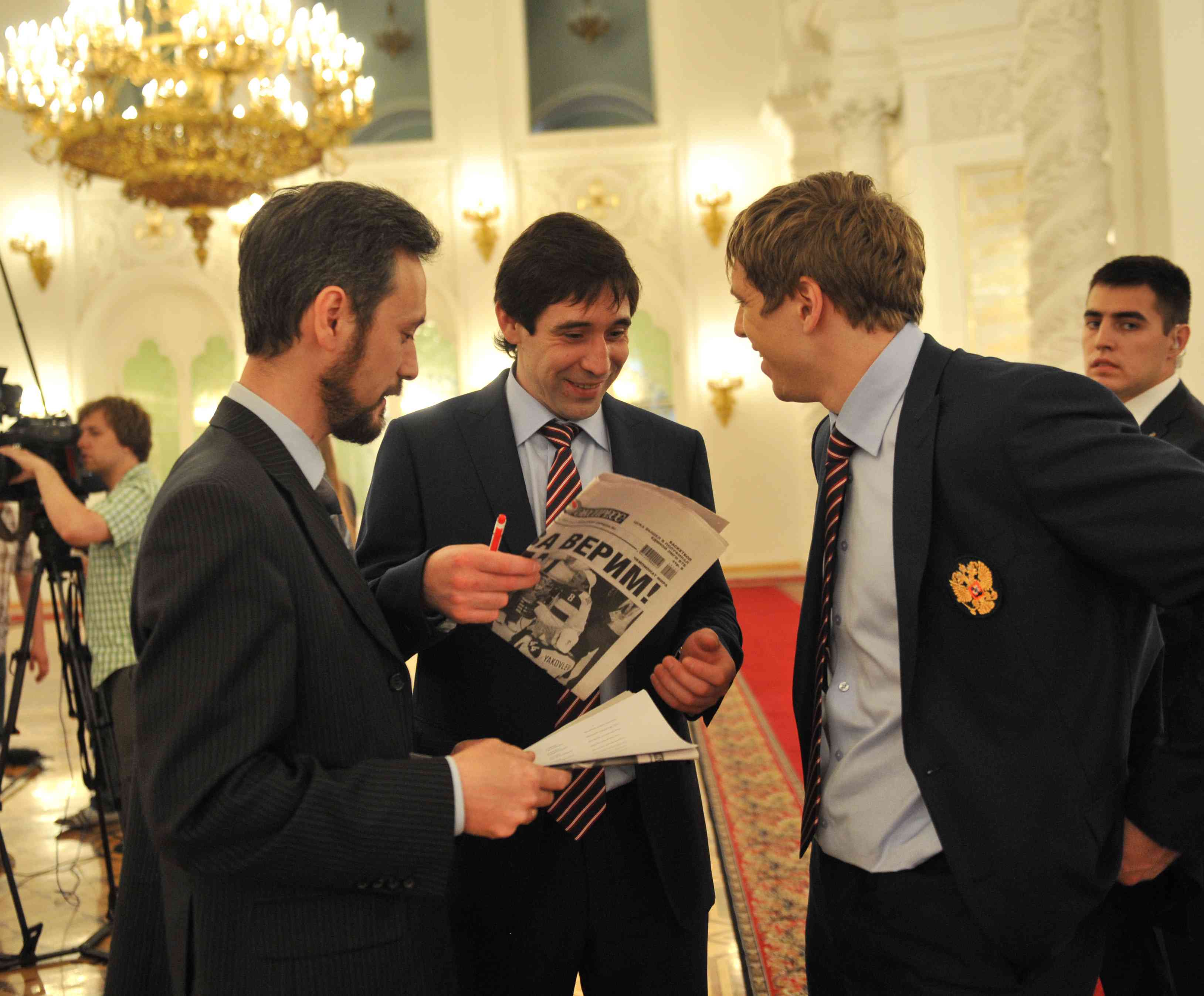 Любопытно, что выходившие за наградой Бобровский, Василевский, Зубов и Яковлев были названы кандидатами в мастера спорта. Присутствовавшие на церемонии президент Олимпийского комитета России Александр Жуков и министр спорта Виталий Мутко, раз за разом слыша это, улыбались. Ясно, что стены Кремля все хоккеисты покидали со званиями заслуженных мастеров спорта. А вышеназванная четверка, получается, в этом "карьерном росте" перепрыгнула сразу две ступеньки. Что и говорить, имеют право.