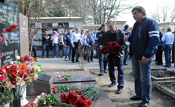 28 апреля 2015 года. Олег ЗНАРОК и его кманда по традиции посетили могилу Валерия ХАРЛАМОВА.