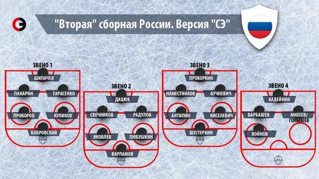 Да, вызывает вопросы центральная линия (Шипачев – из-за игры против топ-сборных, Дацюк – из-за возраста, Прохоркин – из-за общей нестабильности). Но формально – это две очень сильных тройки, перспективная третья, а также четвертая, которая не сильно уступит нынешней (Ковальчук – Андронов – Плотников) в разрушении, а в креативе может дать фору.