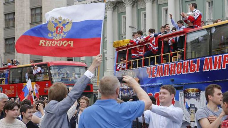 В центре Москвы состоялся чемпионский парад сборной России, в воскресенье завоевавшей золотые медали чемпионата мира. Вдоль всего маршрута парада поздравить и поблагодарить национальную команду собрались толпы болельщиков. Численность этого людского моря измеряется десятками тысяч. Тротуары в центре столицы переполнены, а жители близлежащих домов выходят на балконы, чтобы также поприветствовать хоккеистов.