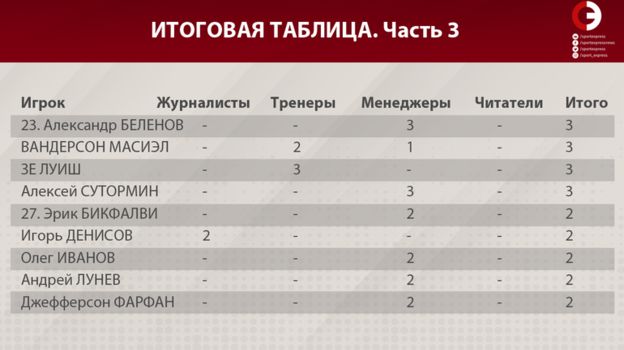 – Благодаря голосам из Уфы и Екатеринбурга в итоговом списке появились игроки из местных клубов. А вот футболист из Оренбурга Сутормин получил три балла благодаря "Динамо".