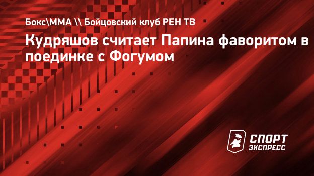 Боксер Дмитрий Кудряшов считает, что россиянин Алексей Папин победит камерунца Ролли Ламберта Фогума в поединке на турнире «Бойцовского клуба РЕН ТВ».