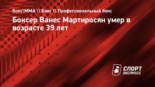 Боксер Ванес Мартиросян умер в возрасте 39 лет