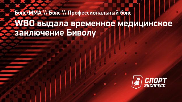 Российский боксер Дмитрий Бивол получил временное медицинское заключение от Всемирной боксерской организации (WBO).