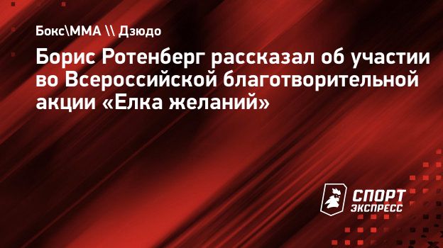 Президент общества спортивных единоборств «Отечество», вице-президент Федерации дзюдо России Борис Ротенберг рассказал «СЭ» об участии во Всероссийской благотворительной акции «Елка желаний».