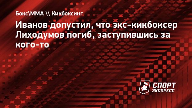Иванов допустил, что экс-кикбоксер Лиходумов погиб, заступившись за кого-то