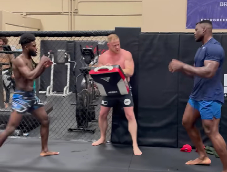 Обладатель пояса чемпиона UFC в легчайшем весе Алджамейн Стерлинг провел тренировку с действующим чемпионом тяжелого дивизиона Фрэнсисом Нганну. Бойцы потренировались в зале Xtreme Couture MMA в Лас-Вегасе.