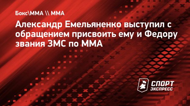 «У меня просьба ко всем тренерам, ко всем спортсменам, — сказал Емельяненко в интервью «СЭ». — В 2023 году было как я 20 лет нахожусь на профессиональном ринге. Знаю, что дают звания мастер спорта, международный мастер спорта. Походатайствуйте перед Союзом ММА России, пусть братьям Емельяненко как родоначальникам смешанных единоборств России присвоят звания заслуженных мастеров спорта в смешанных единоборствах. Знаю, что эти звания присваивают не только за Олимпийские игры, но и за развитие и пропаганду», — заявил Емельяненко.