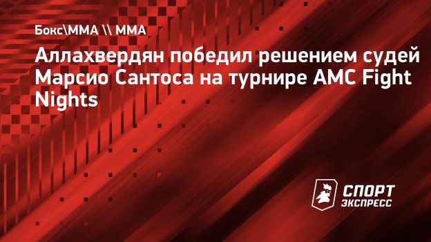 Аллахвердян победил решением судей Марсио Сантоса на турнире AMC Fight Nights