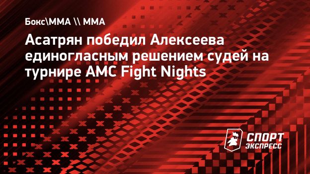 Асатрян победил Алексеева единогласным решением судей на турнире AMC Fight Nights