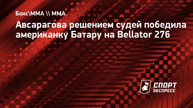23-летняя Авсарагова одержала пятую победу в карьере в ММА и третью в Bellator. На счету 27-летней Батары 8 побед и 5 поражений.