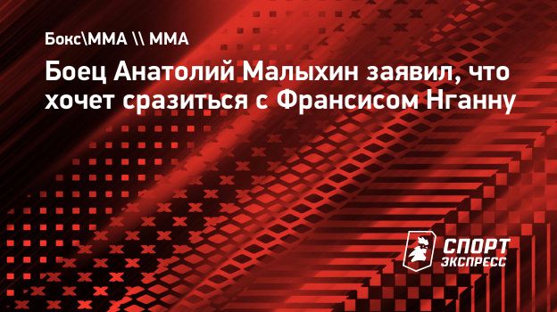 Двойной чемпион лиги ONE Championship Анатолий Малыхин (13-0) заявил, что хочет сразиться с экс-чемпионом UFC в тяжелом весе Франсисом Нганну (17-3).