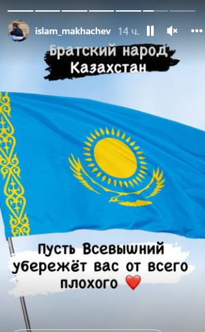 «Братский народ Казахстана, пусть Всевышний убережет вас от всего плохого», — написал Махачев.