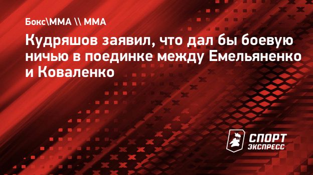 Кудряшов заявил, что дал бы боевую ничью в поединке между Емельяненко и Коваленко