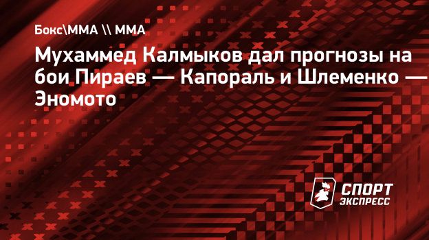 Мухаммед Калмыков дал прогнозы на бои Пираев — Капораль и Шлеменко — Эномото