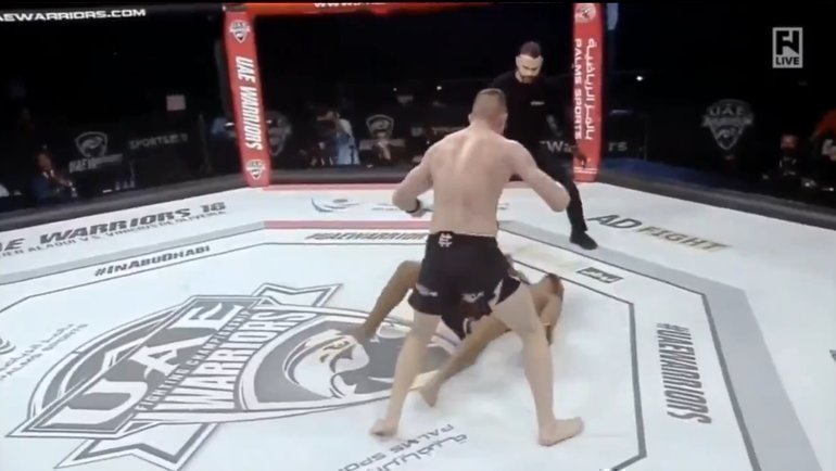 Damnn. Denis Tiuliulin brutally finishes Juscelino Ferreira #UAEWarriors18 pic.twitter.com/jd0FeWrkpc
