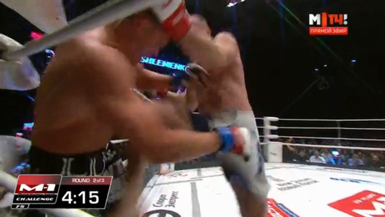 Эпизод 1. 2.50 1-го раунда. Шлеменко пробивает Брэдли коленом после долгого времени, которое он провел в партере – американец при этом не действовал активно, а россиянин ждал, когда судья их "поднимет".