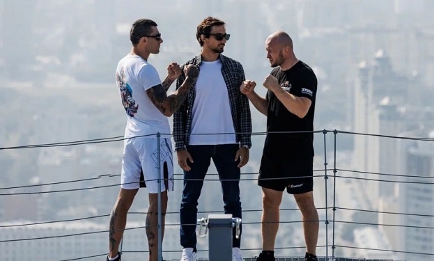 Участники главного поединка турнира RCC 12 вместе с другими бойцами карда поднялись на высоту 200 м, где отработали «бой с тенью» и встретились лицом к лицу.