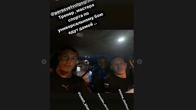 После выступления спортсмены опубликовали совместное фото из салона машины с подписью «Тренер, мастера спорта по универсальному бою едут домой».