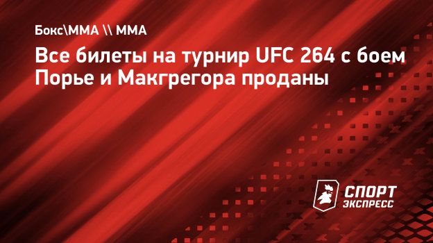 Проданы все билеты на турнир UFC 264, сообщает в Twitter глава промоушена Дана Уайт. Вечер единоборств пройдет в Лас-Вегасе (штат Невада, США) в ночь с 10 на 11 июля по московскому времени.