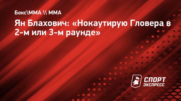 Ян Блахович: «Нокаутирую Гловера в 2-м или 3-м раунде»