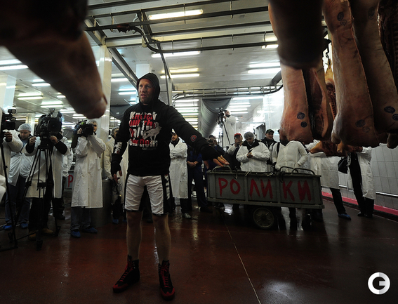Российский боец смешанного стиля Сергей Харитонов провел тренировку на одном из мясокомбинатов Москвы перед боем с американцем Марком Миллером. Фото - Антон СЕРГИЕНКО, "СЭ ИНТЕРНЕТ"