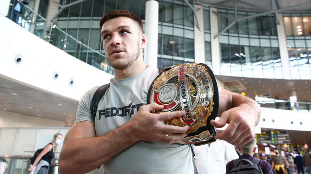 Российский боец MMA Вадим Немков вернулся в Москву после победы над американцем Райаном Бейдером в поединке за титул чемпиона Bellator в полутяжелом весе.