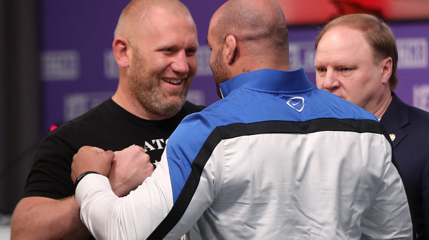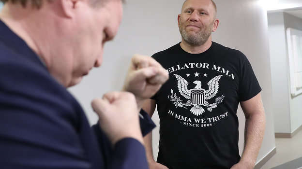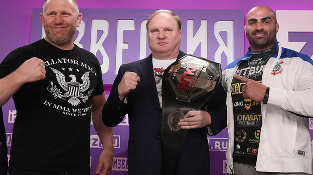 В пресс-центре МИЦ «Известия» прошла пресс-конференция российского бойца ММА Сергея Харитонова и бразильца Фернандо Родригеса. Спортсмены 23 февраля сразятся за титул чемпиона мира в весовой категории свыше 110 кг в рамках промоушена WTKF. Зрелищную битву в прямом эфире покажет телеканал РЕН ТВ (начало — в 23.00).