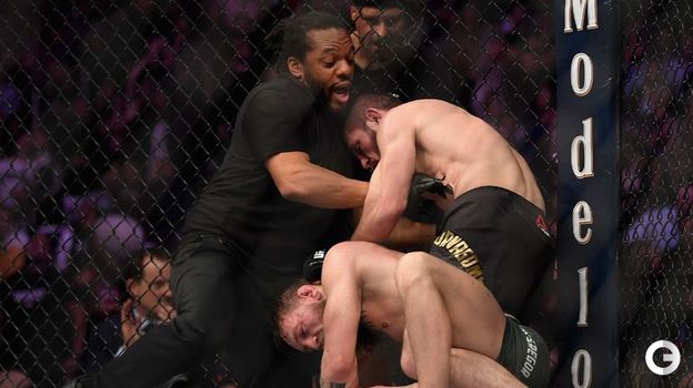 Хабиба увели с октагона после боя с Конором, после чего его объявили победителем