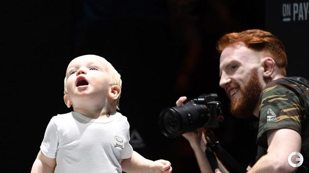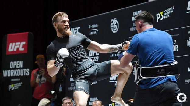 В Лас-Вегасе прошла открытая тренировка Хабиба Нурмагомедова и Конора Макгрегора перед их поединком в субботу. Ирландец привел на нее своего полуторагодовалого сына и продолжил оскорблять российского бойца.