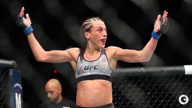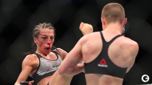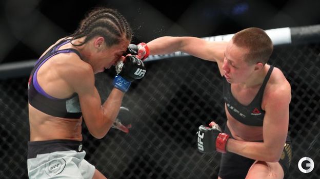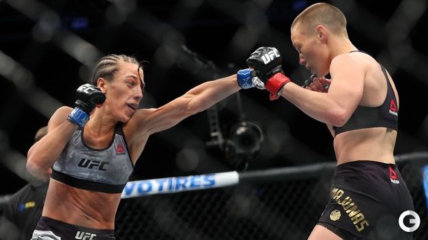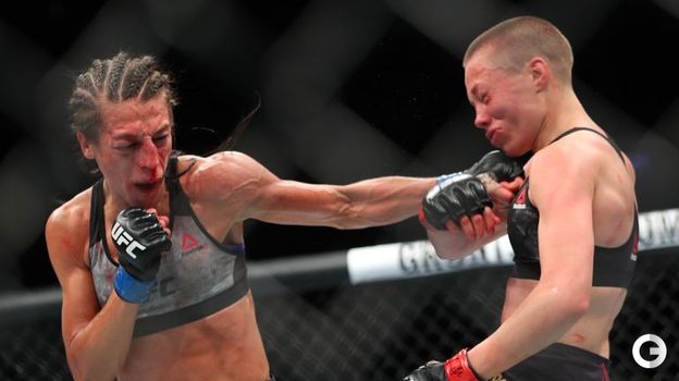 На турнире UFC 223 в Нью-Йорке в главном женском бою вечера сошлись обладательница пояса американка Роуз Намаюнас и полька Йоанна Енджейчик. Экс-чемпионка Енджейчик вела поединок, несмотря на серьезные повреждения, однако выиграть бой-реванш ей не удалось. Судьи единогласным решением признали победу Намаюнас, которая активно провела концовку и вместе с тем защитила титул в наилегчайшем весе. Все три судьи отдали этнической литовке с одинаковым счетом 49-46.