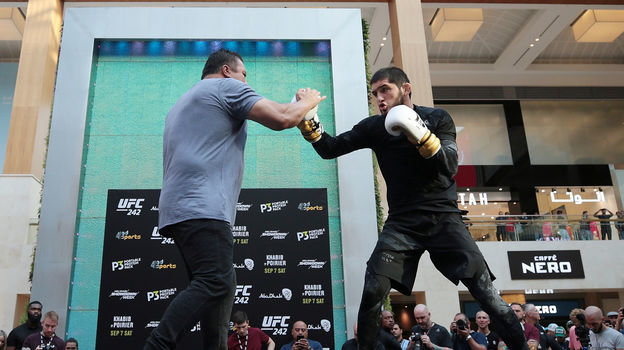 Чемпион UFC в легком весе (до 70,3 кг) Хабиб Нурмагомедов отменил открытую тренировку в преддверии боя с американцем Дастином Порье, чтобы пообщаться с болельщиками. 30-летний Нурмагомедов приехал в один из торговых центров в Абу-Даби, где участники турнира UFC 242 проводили открытые тренировки, вышел на помост и заявил, что вместо демонстрации бойцовских навыков хочет пообщаться с фанатами, попросив их задавать ему вопросы.