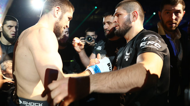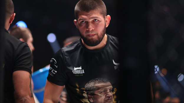 Хабиб у октагона, Запашный, Джикия и Бакаев в зале на турнире памяти Абдулманапа Нурмагомедова