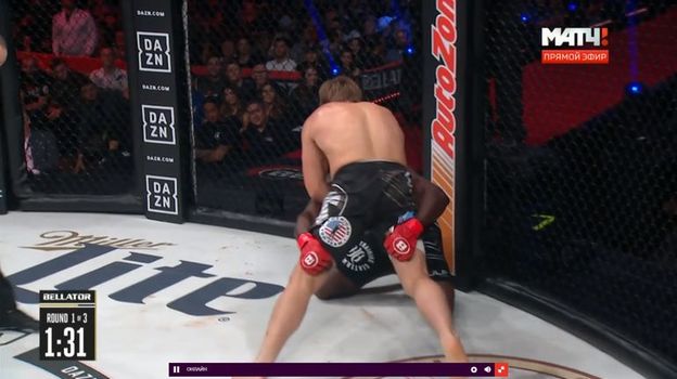 Начался бой с того, что Минаков и Конго просто ходили рядом друг с другом и не выбрасывали ударов. Это иногда называется разведкой. Затем на второй минуте случился удар в пах. Француз нанес его коленом, когда находился в клинче. Минаков согнулся и попросил время на восстановление. В этот момент вспомнился вчерашний бой Сергея Харитонова с Мэттом Митрионом. Но к счастью, на этот раз обошлось без носилок и госпитализации.