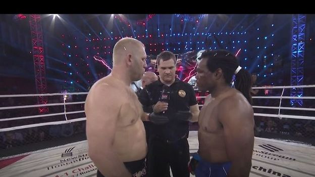 После пары размашистых ударов рефери останавливает бой.