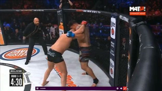 Через 20 секунд уже Емельяненко получил свой момент. Он реваншировался за небольшую ошибку в начале и сам отправил соперника на настил, но не ударом, а броском. Забороть, однако, Мира не получилось. Не без труда, но ему удалось выбраться из неприятного положения.