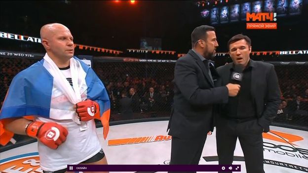 После финального гонга и объявления Федора победителем в клетку поднялся Чел Соннен - будущий соперник россиянина по полуфиналу Гран-при Bellator. Американский ветеран выглядел несколько нервозно, но заготовленные слова сказал с правильной интонацией: Я ненавижу даже саму мысль, что могу проиграть ему. Жду с нетерпением, когда смогу побить Федора и доказать, что являюсь лучшим. Федор его гнев не оценил и с улыбкой пожал сопернику руку. Ждем их новой встречи в клетке, это должно быть не менее интересно, чем сегодняшний бой!