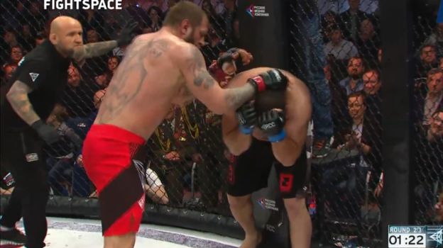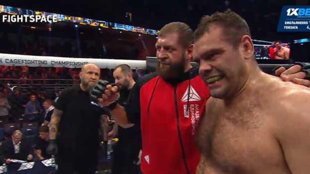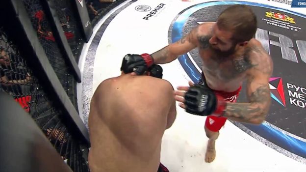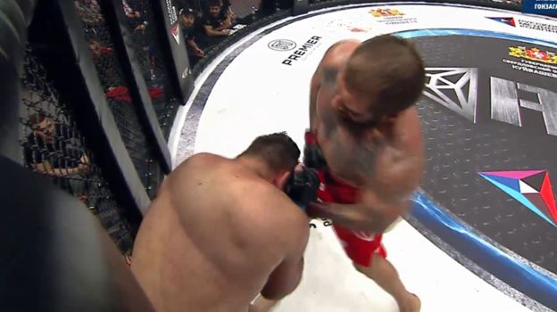 Емельяненко добил своего соперника ударом коленом в подбородок. Гонзага упал, а подскочивший арбитр остановил попытку россиянина нанести контрольный с правой в голову. Все. Победа техническим нокаутом