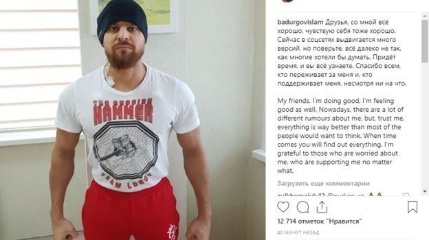 Ислам быстро удалил видео, но оно уже разошлось по Youtube. В СМИ появилась информация, что спортсмена ударили ножом в шею — без ссылки на кого-либо (даже на источник знакомый с ситуацией). Кажется, кто-то просто додумал и сделал из этого новость. Естественно, в комментариях заговорили о дагестанском следе. По данным «СЭ», никто Бадургова ножом не бил — это была плановая операция на шее.