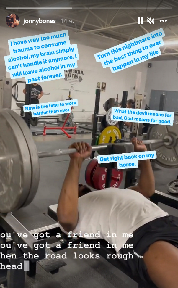 «У меня слишком много травм, чтобы употреблять алкоголь. Мой мозг просто больше не может с этим справляться. Я навсегда оставлю алкоголь в своем прошлом. Я собираюсь превратить этот кошмар в лучшее, что когда-либо случалось в моей жизни. Сейчас самое время работать усерднее, чем когда-либо. То, что для дьявола — зло, то для Бога — благо. Возвращаюсь в седло», — сказал Джонс.