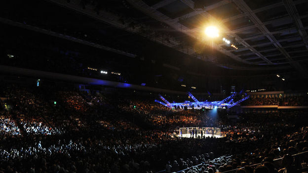 Если считать популярность спортивной организации по числу людей, носящих одежду с ее символикой, UFC точно будет на первом месте. Во всяком случае, в московском метро, спальных районах столицы и на Кавказе. Да и в России вообще. Логично, что народа в "Олимпийском" было много. Действительно много. Трибуны спорткомплекса рассчитаны на 35 тысяч зрителей. В субботу вечером они были почти наполовину закрыты, зато были места в партере. Точных цифр пока нет, но, кажется, набралось не меньше 20 тысяч человек. А то и все 25. Люди в проходах стояли (причем очень многие – просто толпы)! Из категории бокс/ММА так много народа в России собирал только Федор Емельяненко vs Джефф Монсон в 2011-м и Александр Поветкин vs Владимир Кличко в 2013-м.