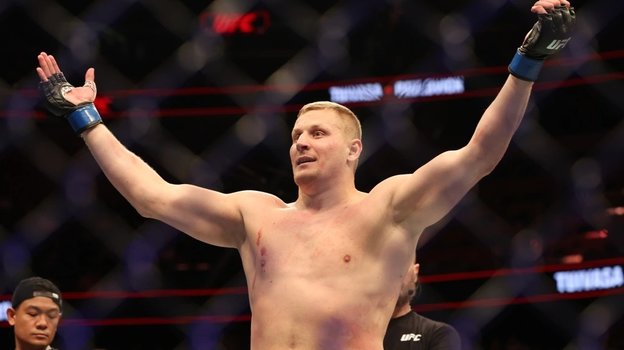Он начал ее с того, что закинул длиннющий оверхэнд за ухо Туйвасе (супердлинные руки Павловича делают его оверхэнд невероятно опасным и настигающим, UFC уже представляют россиянина перед боем как обладателя второго самого длинного размаха в промоушене), и связал его с еще четырьмя ударами. Соперник сумел принять почти всю серию на блок и ответить своей могучей двойкой из боковых, которая, как показалось, даже слегка качнула Павловича (особенно левый хук в челюсть).