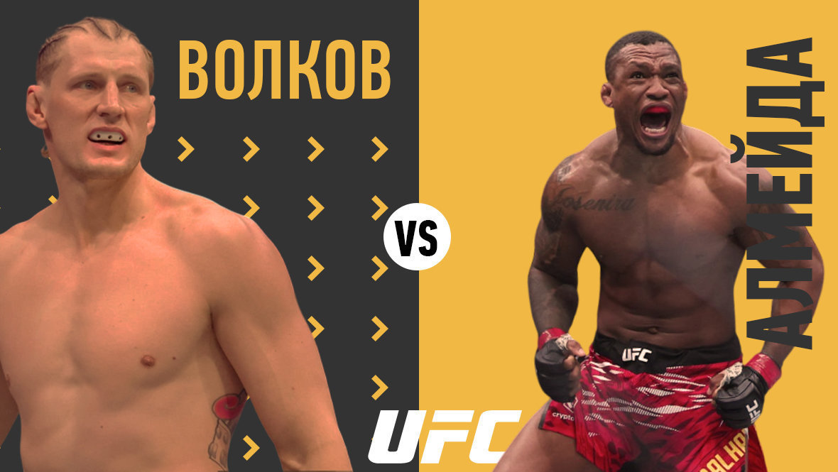 Волков одержал 38 побед и потерпел 11 поражений в профессиональных ММА. У Алмейды — 22 победы и 3 поражения.